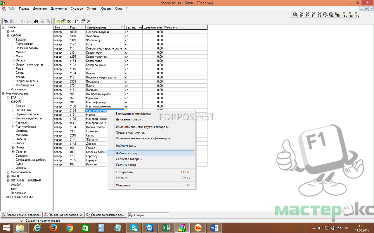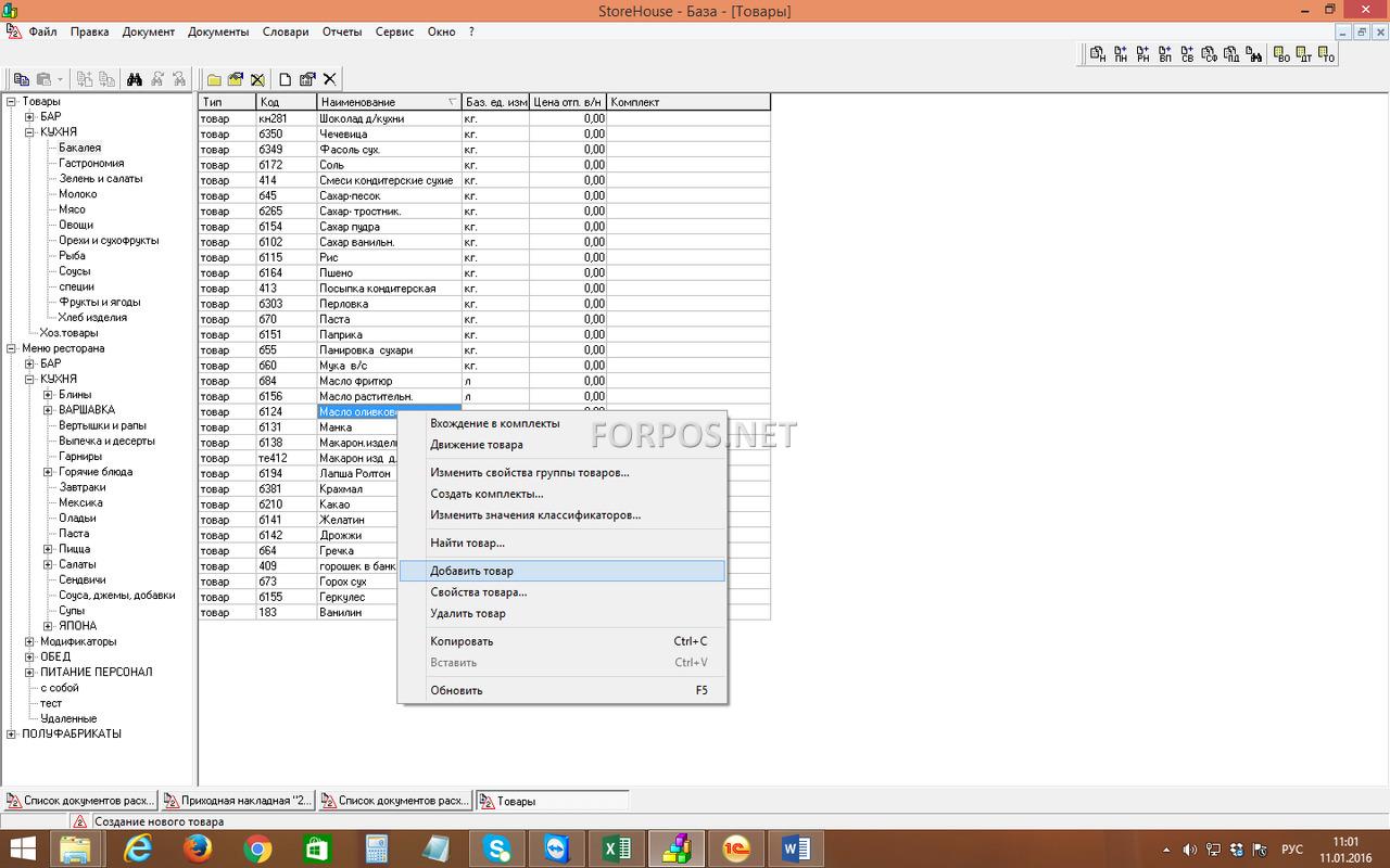 Калькуляционный учет кафе ресторана Store House